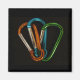 Photographie de mousquetons d'escalade de roche colorés sur un arrière - plan noir.