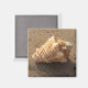 Une coquille de mer conque repose sur la plage de sable avec un éclairage doux du coucher du soleil. Photo en couleur prise à Playa Grande, Costa Rica sur la côte Pacifique. Customisez cet aimant de plage de coquillage de mer avec vos propres textes ou images.