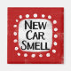 "New Car Smell" est un design de texte amusant avec une forme d'accent blanc entourée de points blancs texturés.