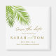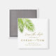 Sauvegarder votre date sur un aimant "Adoptez l'élégance moderne avec ce design minimaliste de palmier tropical 'Sauvegarder la date'. Un fond blanc propre donne le ton à la simplicité, tandis qu'une seule feuille de palmier élégante de couleur vert doux accentue doucement le coin.