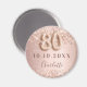 Magnifique magnet de sauvegarde de date élégant, classique, glamour et féminin pour une fête de 80e anniversaire. Fond dégradé rose gold et blush. Décoré de confettis rose gold. Personnalisez et ajoutez un nom. Le nom est écrit avec un style d'écriture manuscrite moderne de couleur rose foncé. Le numéro 80 est écrit avec une police de caractères de style ballon.
