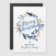 Cette carte de Noël élégante est ornée d'une couronne de rennes dorés et de verdure bleue et grise. Joyeux Noël est écrit dans une belle écriture manuscrite. Personnalisez cette carte en ajoutant des noms et une année.
