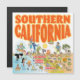 Une scène lumineuse et colorée offre une vue spectaculaire de la Californie du Sud - personnages farfelus sur la plage et le désert de SoCal présentant les parcs de Los Angeles, Orange County, San Diego, Père Noël Barbara, Riverside, Palm Springs, El Centro, Salton Sea, Anza Borrego et Joshua Tree ainsi que les villes frontalières de Tijuana, Tecate et Mexicali. Cette charmante scène a tout - un surfeur pend dix tandis qu'un orque saute de l'eau, des animaux de zoo accueillent les touristes, les amateurs de vin font un toast comme un randonneur est remarqué par un OVNI et bien plus encore...