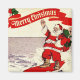 Cet aimant de Noël tape à l'oeil présente une illustration vintage du Père Noël sur une planche de surf. L'aimant de plaisir parfait pour les fans de Père Noël et tout rétro!