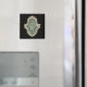 Le Khamsa (ou Hamsa) est un symbole en forme de palmier, populaire dans tout le Moyen-Orient et en Afrique, qui est incorporé dans les bijoux et les tentures murales pour se protéger de "l'oeil maléfique". J'ai incorporé les signes du zodiaque pour rappeler au spectateur que nous avons tous le pouvoir en nous de nous protéger de ce que la vie jette sur notre chemin.