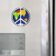 Communiquez le message de "Paix" avec cet aimant à boutons colorés ! Le graphique a été conçu par Amy Kuhl Cox, artisan de la Caroline du Sud, et présente les Hémisphères orientaux, en utilisant les couleurs des cartes Montessori.