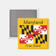 Une image authentique et de qualité du drapeau du Maryland dressé entre le nom de l'Etat et le surnom sur un arrière - plan couleur drapeau.