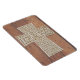 Aimant frigorifique avec une croix sur un arrière - plan brun rustique et les versets des Écritures chrétiennes de 1 Corinthiens 13:4-8, du chapitre Amour de la Bible. "L'amour est patient, l'amour est gentil..."