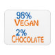 Chemises, vêtements, sacs et produits vegan amusants font savoir au monde que vous êtes majoritairement végétalien, 98% végétalien 2% chocolat. De Big City Vegan.