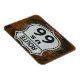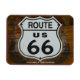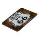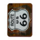 Photo d'un bouclier de route 66 sur un bâtiment en bois. Photo de Hans Braxmeier.