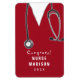 Un cadeau et/ou une carte pour diplômé de l'école de soins infirmiers présentant des gommages rouges.