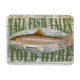 Un aimant décoratif pour le pêcheur dans votre vie. "Tall fish tales told here" avec une image détaillée d'une truite arc-en-ciel sur un arrière - plan rustique en bois patiné.