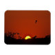 Le coucher du soleil sur cet aimant s'est déroulé dans un marais d'eau salée de Westbrook, dans le Connecticut. L'oiseau qui vole au coucher du soleil est une mouette.