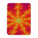 Cet aimant impressionnant présente une image fractale qui rappelle un orage sur Vénus. Il a un arrière - plan orange vif avec des lignes jaune vif qui sortent du centre qui ressemblent à des boulons brûlants de la foudre. Au centre de chaque éclair, il y a une ligne bleue qui me rappelle une veine qui donne le titre de Thunderstorm veineux.