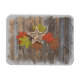 Des feuilles en jute de couleur automne entourent deux étoiles et deux petits coeurs reposant sur des panneaux de clôture rustiques. La composition crée des couches de texture et de style à l'oeuvre. La photo d'origine est masquée pour se fondre harmonieusement avec une variété d'arrière - plans.