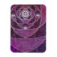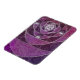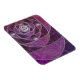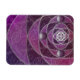Un design en vitrail de spirales argentées et de tons de prune, sur un fond répétitif de fractales en spirale. Les spirales argentées convergent en un rose argenté, avec des pierres rondes pour accents.