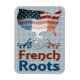 Aimant des racines françaises américaines. Une carte des Etats-Unis avec les drapeaux de France et d'Amérique, et le texte 'French Roots' en dessous. Idéal pour les Américains fiers de leur ascendance française et pour les ex-parents.