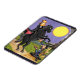Cet aimant frigo a l'illustration de Kristie Hubler, montrant un Ichabod effrayé arrêté par le Horseman sans tête seulement pour être invité à échanger un citrouille contre de la tarte. Le pont couvert est dans l'arrière - plan, avec une grande lune de moisson de minuit dans le ciel.