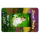 Aimant photo avec arrière - plan de Forêt Magique. Personnalisez petits-enfants, enfants ou conjoints, etc. sur ce bel aimant. Pourpre et vert avec des fleurs.