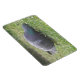 Cet aimant impressionnant présente une photo d'un pigeon sauvage prise dans mon jardin. L'oiseau picorait dans l'herbe à la recherche de semences qui avaient été arrachées d'une mangeoire d'oiseaux. En baissant la tête pour pique, il ferma l'oeil et, par conséquent, il semble qu'il dort.