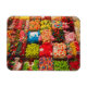 Aimant aux bonbons colorés et autres confiseries dans un étalage d'une confiserie de bonbons sur un marché.