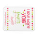 J'adore être votre préféré ... Aimant frigo coloré et amusant. Le modèle est configuré pour vous pour éditer "fille préférée", si nécessaire, ainsi que le message au bas de l'aimant. Le design présente le dicton "J'aime être votre fille préférée" dans la typographie mignonne et est décoré de coeurs et de gribouillis colorés. La palette de couleurs est rose foncé, rose, vert citron et jaune soleil. Beau cadeau pour la Fête des Mères, un Anniversaire ou juste pour le plaisir. Parcourez notre magasin pour trouver des modèles similaires ou des cadeaux alternatifs.