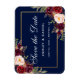 Aquarelle Bourgogne Marsala Floral Bleu Enregistrer l'aimant Date