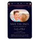 Mystical Rainbow Dark Navy Blue Sun Moon Stars Space Save The Dates Magnet présente un arc-en-ciel coloré soleil, lune et étoiles encadré sur un arrière - plan bleu marine foncé. A l'intérieur est votre photo préférée et votre personnalisation enregistrer les informations de date. Personnalisez en modifiant le texte dans les zones de texte. Conçu pour vous par ©2024 Evco Studio www.zazzle.com/store/evcostudio
