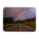 Un arc-en-ciel double convergeant avec une route, Minas Gerais, Brésil, 2015.