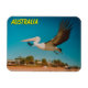 Un pélican volant le long de la plage à Monkey Mia, en Australie occidentale.