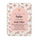 Un cadre en arc sur un motif de pampas herbe et fleurs roses et une croix dorée. Personnalisez et ajoutez un nom et des détails.
