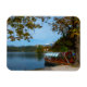 Aimant photo rectangulaire de bateaux touristiques traditionnels colorés dans le lac Bled sous un châtaignier aux couleurs de l'automne dans un paysage automnal en Slovénie.