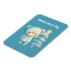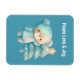 Aimant flexible avec une adorable illustration. Un ours douillet aux étoiles et aux étincelles dans sa fourrure. À côté d'un sapin de Noël. Couleur pastel bleu-vert. Whimsical et mignon.