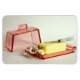 Plat de beurre de verre rosaline rose dépression des années 1930. Ce beau gardien de beurre Art déco "Severina" en verre pressé a été conçu par Charles Graffart pour la collection luxueuse initiale de 1935.