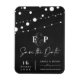Black White String Lights Monogramme Mariage Enregistrer La Date Invitation Magnétique. Envoyez ces élégantes Chalkboard String Lights Wedding Save The Date magnétique Invitation à la famille et aux amis. Une façon parfaite d'annoncer le mariage. Peut être entièrement customisé en changeant les initiales du monogramme, les noms de l'Épouse et de la Salle de mariage, Date . La conception a un arrière - plan de tableau de bord faux avec des lumières à cordes. Pour toute personnalisation supplémentaire, n'hésitez pas à me contacter à l'adresse mypaperlove2021@gmail.com