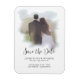 "Blue Simple Elegant Modern Script Aquarelle photo Enregistrer la date." Élégante et sobre, cette photo Save the Date magnet présente votre photo fiançailles sous un lave-linge couleur rose doux qui ajoutera un effet filtré romantique. Un cadeau de conservation agréable et utile pour la famille et les amis. Art par Audrey Jeanne Roberts, artiste et designer de renommée internationale, copyright.