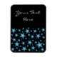 Design moderne avec étoiles bleues et blanches "brillantes" sur un arrière - plan noir. Aimant frigo avec un design personnalisable pour vous de personnaliser avec votre propre texte, images et idées. Veuillez noter qu'il s'agit d'une image imprimée créée à l'aide de photographies originales et de techniques numériques, elle ne brille pas ou ne contient pas de vrais étincelles.