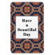 Un aimant flexible avec un motif répétitif d'éléments décoratifs ornés en forme de fleurs, d'étoiles et de soleil.
