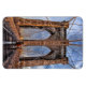 Photographie couleur du pont Brooklyn à New York contre ciel bleu nuageux.