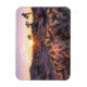 Cactus Cholla violette Orange Joshua Tree Sunset Magnet : Superbe photo coucher de soleil d'un cactus cholla dans le parc national Joshua Tree, avec un Joshua tree en arrière - plan et une superbe étoile solaire.