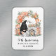 Aimant souvenir personnalisé 50e anniversaire de mariage avec un design représentant des gnomes mariés et une illustration d'arche florale de pêches. Modifiez le modèle avec n'importe quelle année et message.