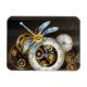 Cadran d'antiquités avec or et lances en laiton, décoré de libellules mécaniques sur arrière - plan brun rayé. Steampunk.