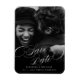Calligraphie Mariage Classic Élégant Enregistrer L'Aimant Date. Un élégant design mariage classique "Save The Date" avec du texte de calligraphie de script fluide blanc. Cet aimant est une façon merveilleuse de vous aider à vous souvenir de votre date de mariage. Veuillez noter que le filtre noir et blanc est allumé, si vous ne voulez pas que cela, regardez ma collection pour un modèle similaire sans le filtre.