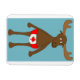 Dessin dessiné du grand orignal canadien portant son vêtement patriotique avec un arrière - plan bleu. Un joli souvenir pour se souvenir de votre voyage au Canada. Une façon amusante de montrer votre esprit canadien tout en gardant vos papiers importants sur le réfrigérateur pour un accès facile.