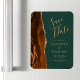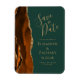 Cette élégante carte de sauvegarde magnétique moderne présente une bordure d'agate aquarelle orange brûlé rehaussée de paillettes dorées fausses. Personnalisez facilement le texte doré sur fond vert foncé.