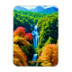 Une cascade chinoise sereine nichée au coeur d'une nature magnifique, entourée d'arbres colorés et de montagnes.