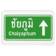 Funny Chaiyaphum, Isan, Thaïlande Devant l'enseigne bilingue de la route thaïlandaise écrite en Scripts de langue thaï et anglaise. Vous pouvez redimensionner et customiser le signe. Notre magasin propose une grande sélection de T-shirts, casquette, tasses et bien plus encore, tous avec des motifs inspirés du dialecte Isaan et de la langue thaïe.