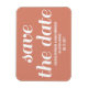 Charme Sauvegarder la date Magnet en orange et blanc avec un design de typographie fantaisiste. Ce modèle tendance et moderne de sauvegarde de l'aimant de date est facile à customiser avec vos détails de mariage. Pour plus d'options de personnalisation, cliquez sur le bouton Customiser.