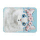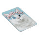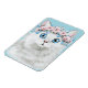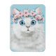 Ce design présente un joli chaton blanc portant un halo aux fleurs rose et bleue.