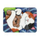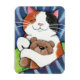 Belle illustration de chat fantaisiste par Lisa Marie Robinson. Un chat calico endormi embrasse un ours en peluche dans ce mignon petit aimant flexible kitty. Oeuvre © Lisa Marie Robinson. Tous droits réservés.